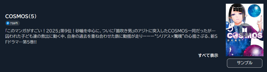 そのポイントを使えば、漫画『COSMOS(コスモス)』の最新刊(5巻)159円でお得に読めます!