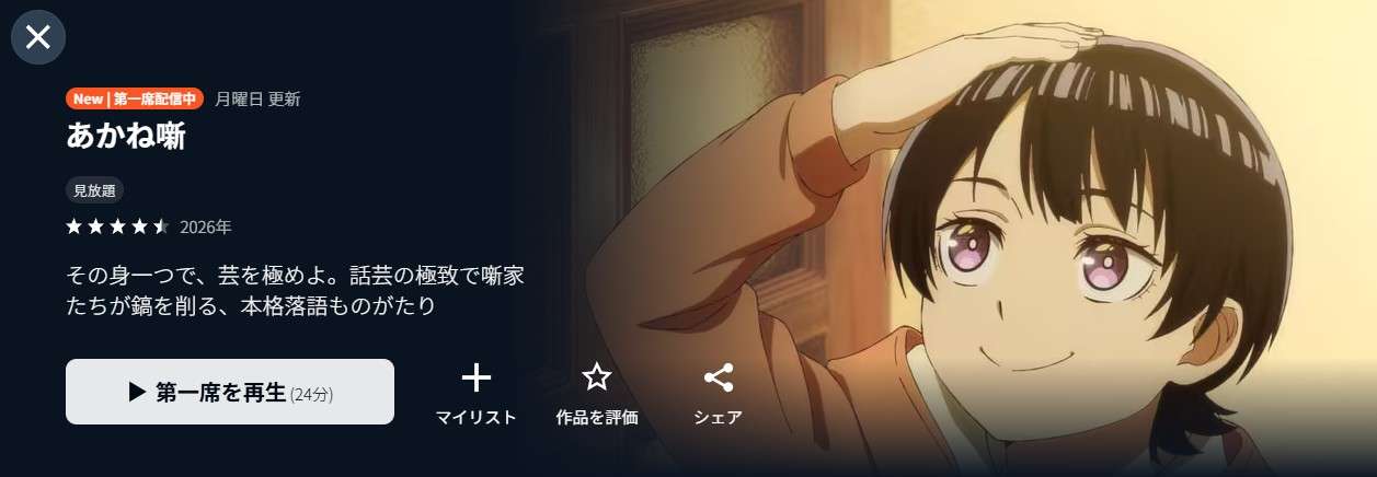 アニメ『あかね噺』の最新話までU-NEXTの無料トライアルで視聴